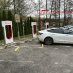 Na Slovenku u Zvolena je to trošku z ruky a ještě u Hotelu Kaskády, kde je supechrager.. Příjezd k němu je přes malou vesničku po dost špatné cestě, kdy si člověk myslí, že je na konci světa.. pak ale přijede k opravdu obrovského hotelu. První co zaujme je závora na vjezdu, ale je bez kódu, bez klíče, bez lístku jen na tlačítko, kdy se závora otevře, pak se jede dál a musí se doprava projet parkovištěm a pak už je to vpravo vidět, ale do poslední chvíle se netuší, kde jsou superchargery schované. Vedle superchargerů je také hotelová nabíječka 22 kW za poplatek 10 Euro na jedno nabíjení, zapnout to ale musí obsluha v recepci. Navíc jeden stojan nabíječky Tesly je nabouraný, kdy do něho někdo nacouval, ale je funkční.